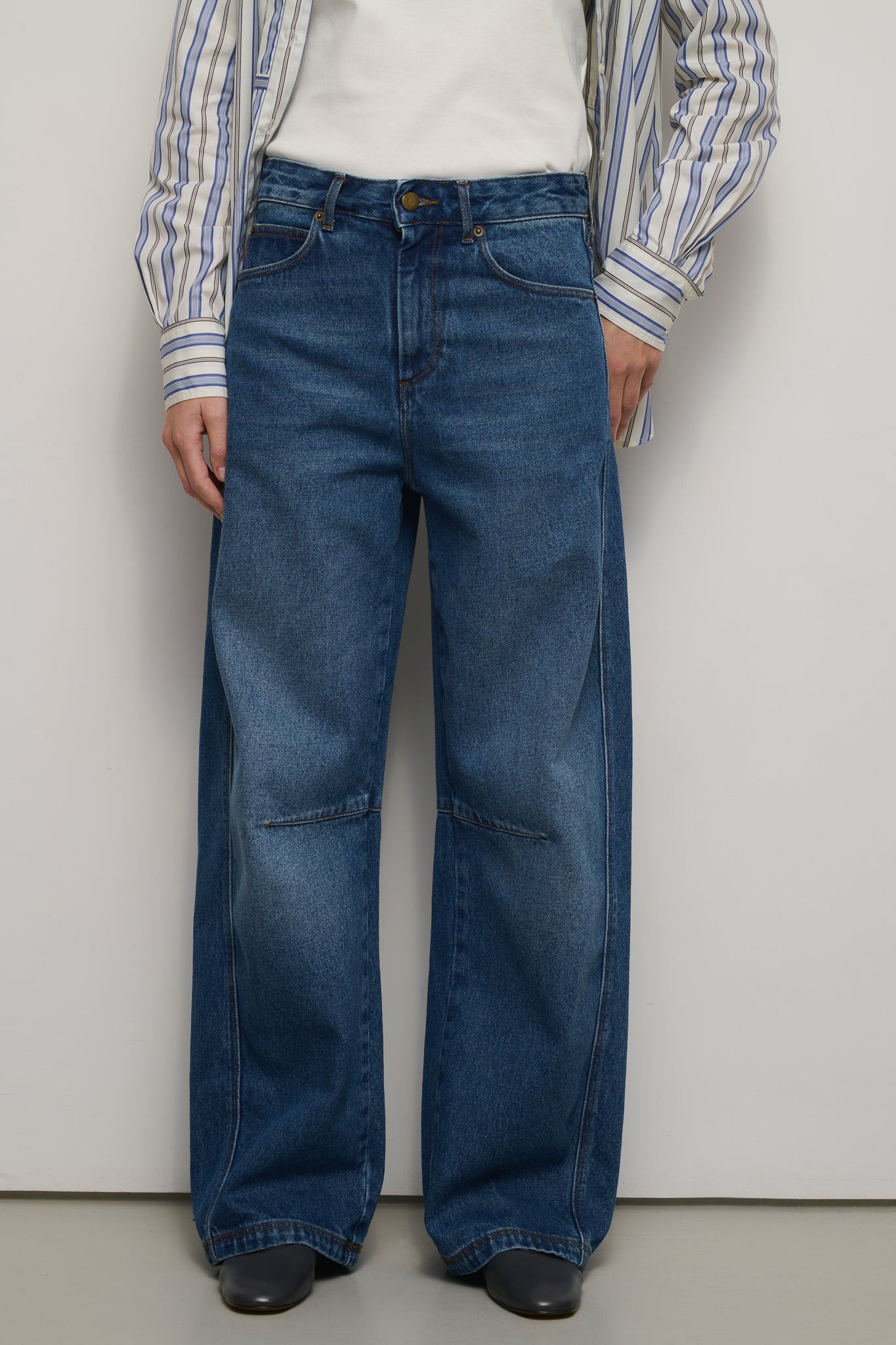 ELIOTT are loose-fitting, feminine jeans. The curved leg, which slims the waist, and the blue colour create a style that combines casual and elegance.
